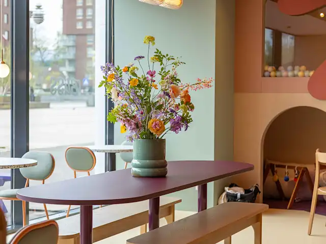 Een warm, kindvriendelijk café waar je kunt genieten van lekkere koffie, vers gebak en gezonde snacks, terwijl je kind zich vermaakt in onze speelhoek.
